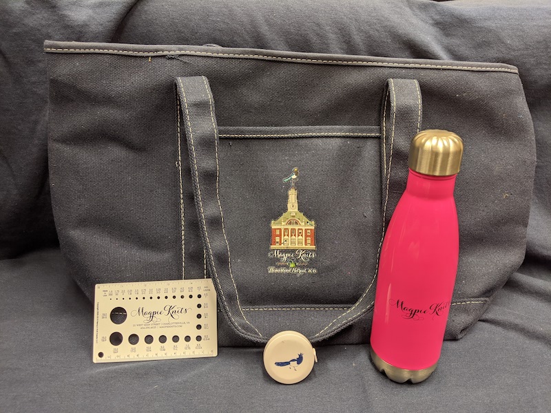 Blue Canvas Tote, Pink Insulated Water Bottle & Knitting Accessories